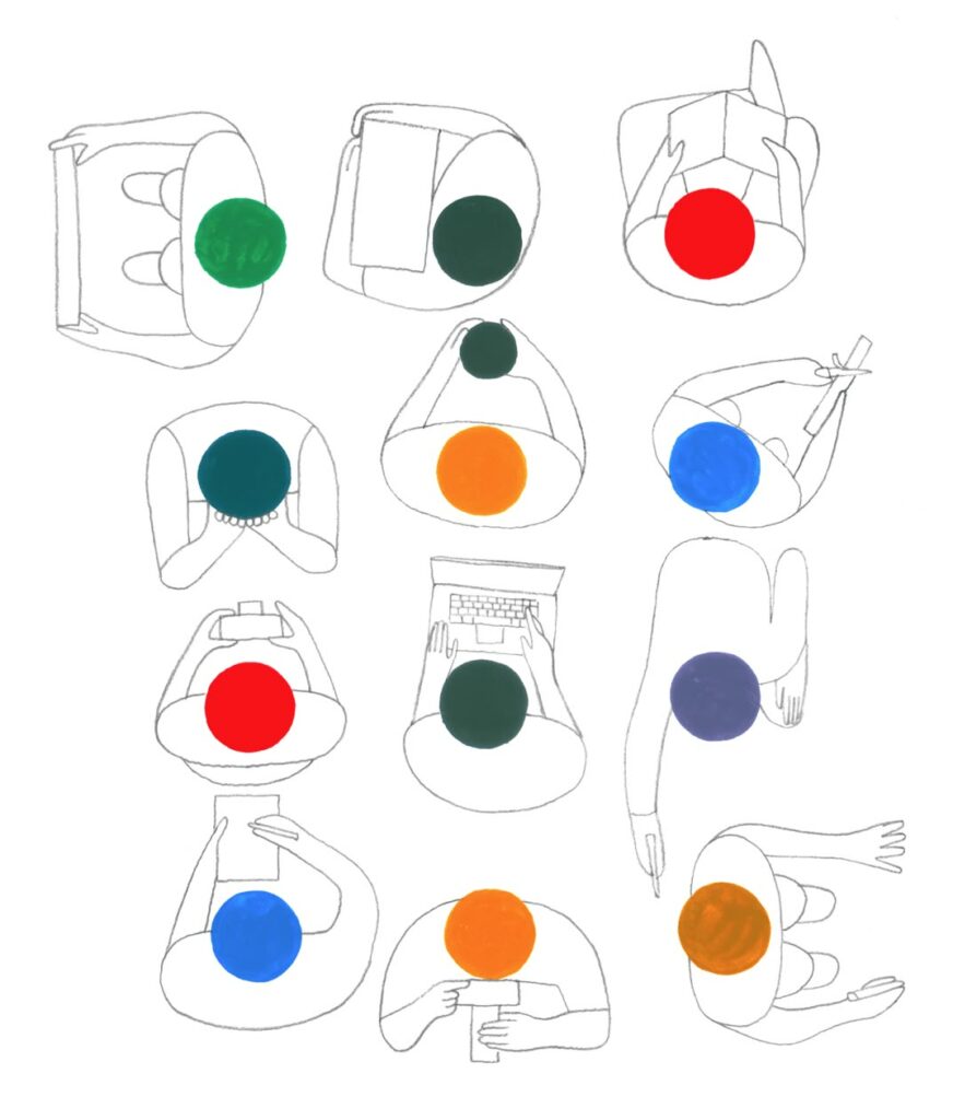 J’ai mis en place un système où chaque illustration est un bout de « fil » qui raconte une histoire à l’une des extrémités. Les illustrations sont indépendantes les unes des autres mais se répondent créant ainsi la surprise.