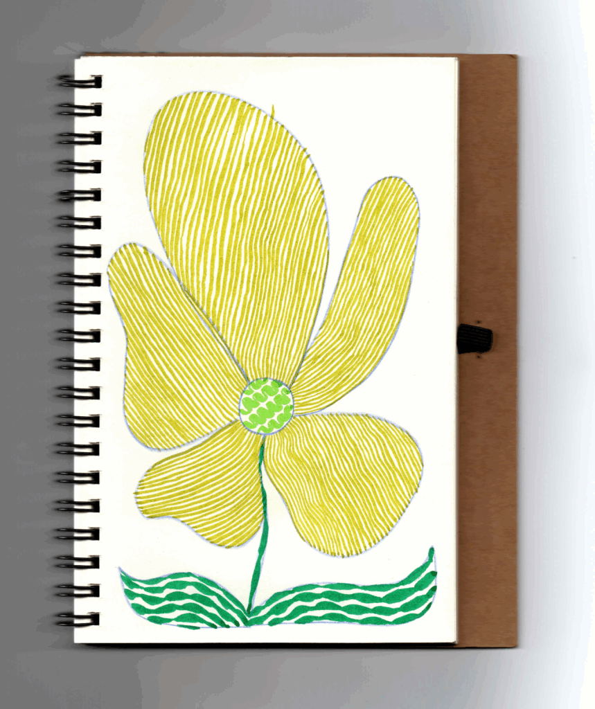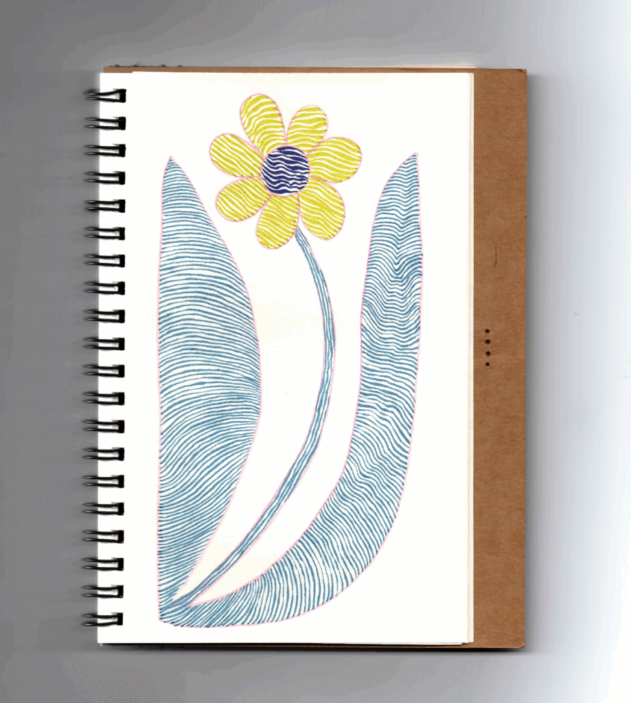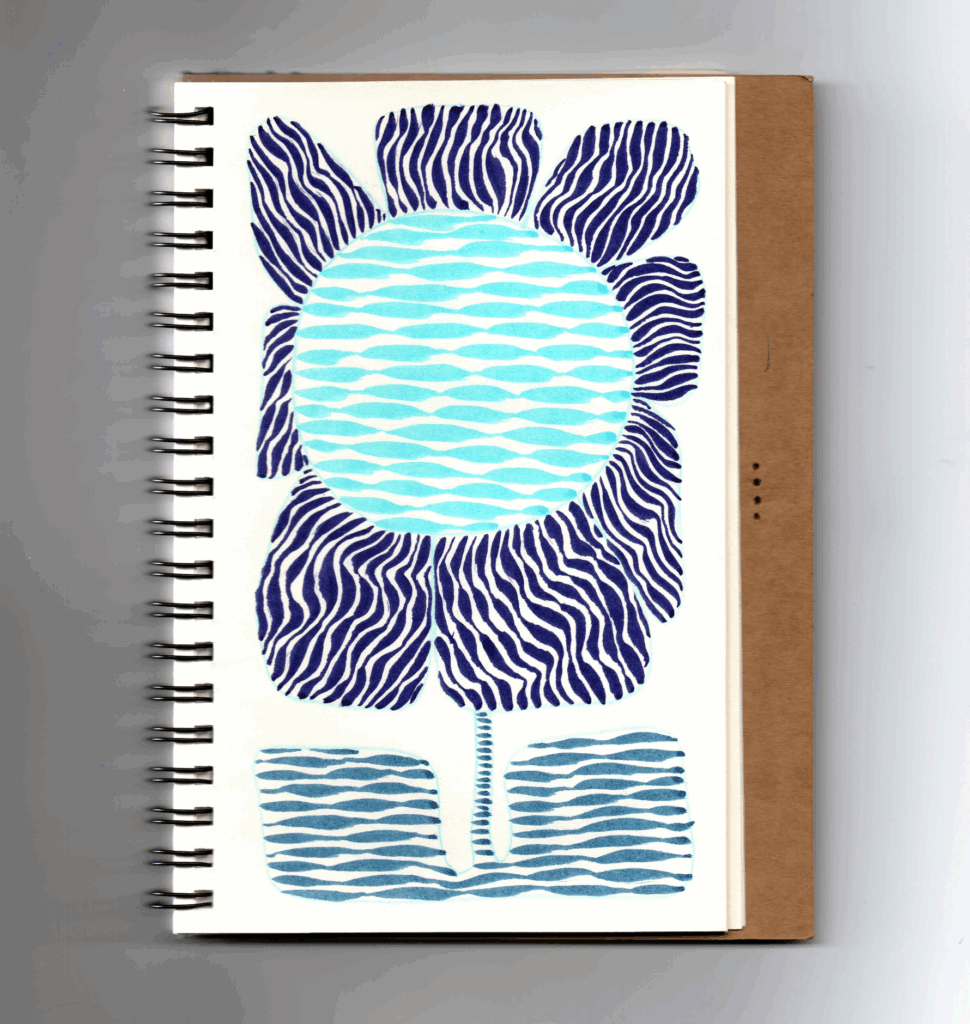 J’ai voulu utiliser le matériel d’art que j’avais chez moi et avec lequel je n’étais pas à l’aise. J’ai commencé à expérimenter avec des feutres de couleurs et à travailler la pression pour créer des motifs.