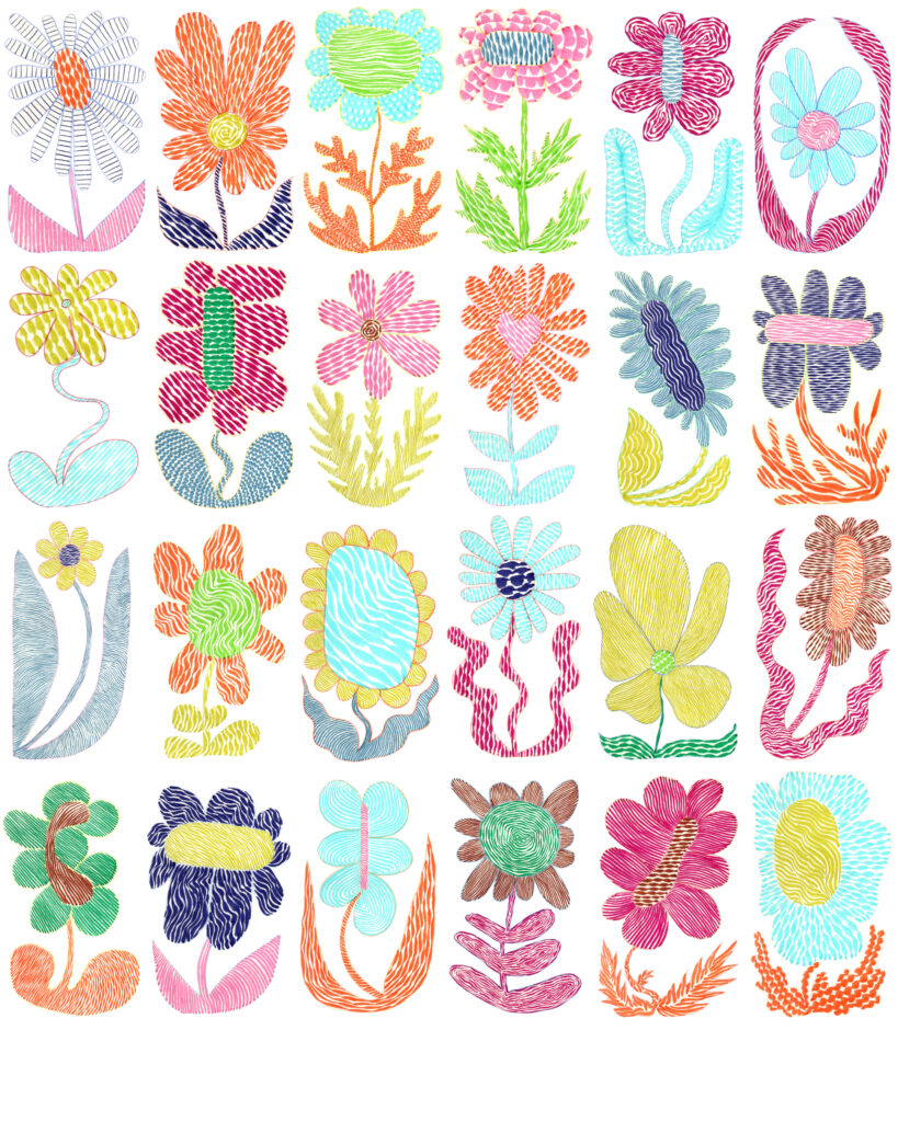 Parti d’une expérimentation, ce projet est la création de 68 fleurs dessinées au crayon de couleur et au feutre avec une recherche sur la texture