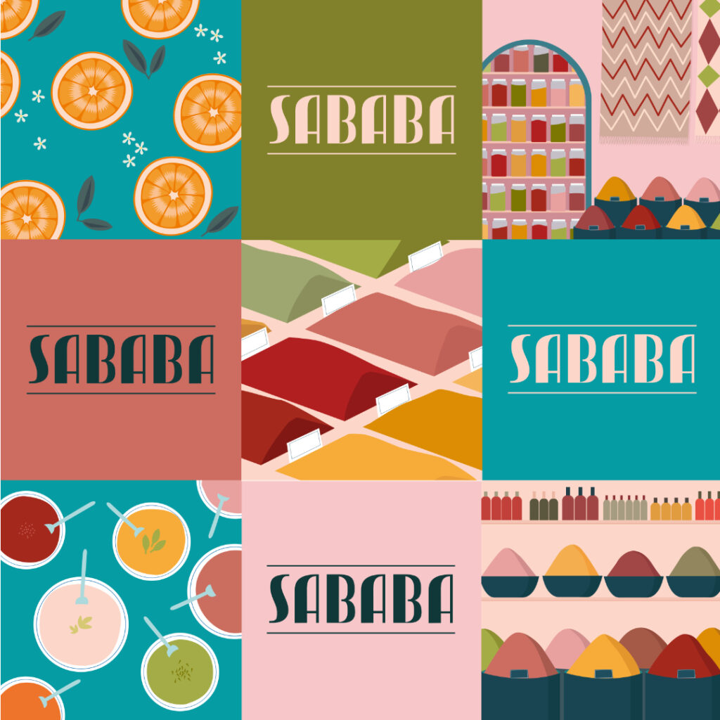 Pour la création d’un restaurant rattaché à UberEats, j’ai réalisé toute l’identité visuelle. Sababa est un restaurant au concept oriental. N’étant disponible qu’à la livraison, la création de l’univers graphique jouait un rôle très important.